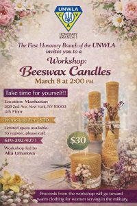 Перший Почесний Відділ СУА (UNWLA) запрошує на творчий майстер-клас із виготовлення воскових свічок, який відбудеться 8 березня о 14:00 у Мангеттені.