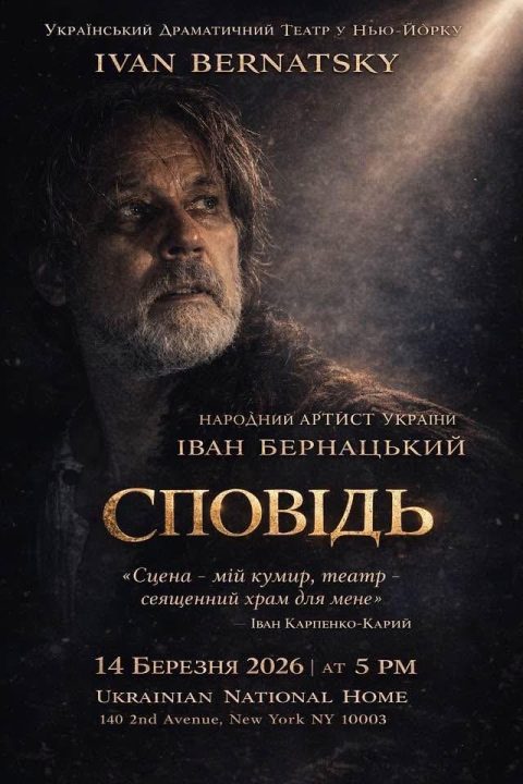 країнський драматичний театр у Нью-Йорку запрошує на глибоку та проникливу виставу Народного артиста України Івана Бернацького — «Сповідь».
